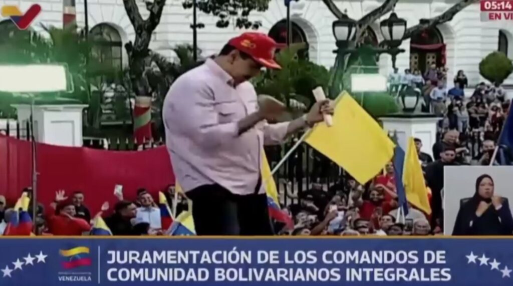 O ditador da Venezuela, Nicolás Maduro, dançou nesta segunda-feira (1º) ao som de uma versão remixada de uma fala dele inglês durante uma marcha para empossar novas organizações comunitárias. Maduro já havia aparecido em público dançando ao som da chamada versão remixada de “Paz, sim,…
