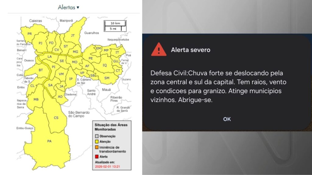 Cidade de São Paulo entra em estado de atenção para alagamentos