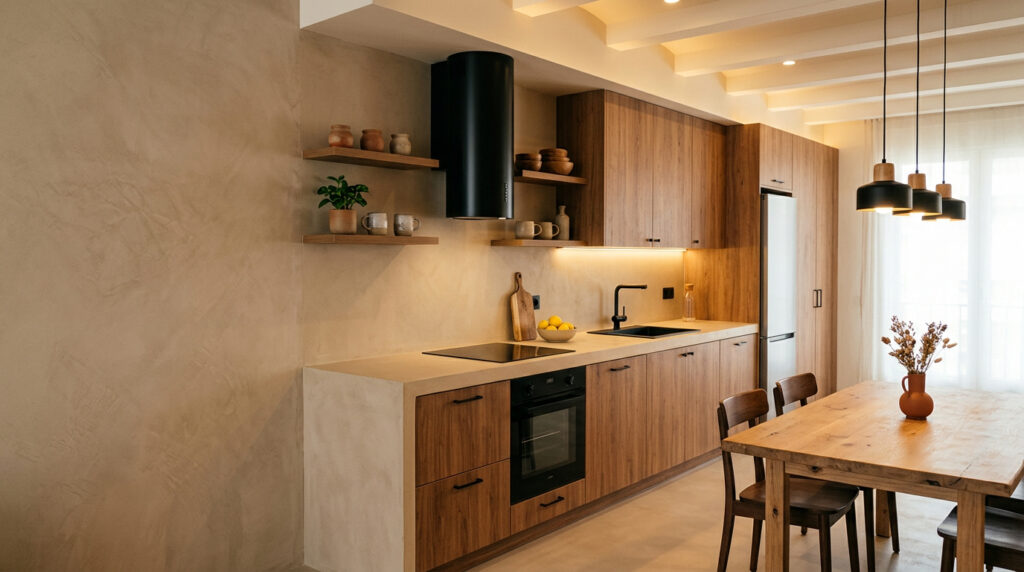 Nas casas brasileiras, essa escolha faz sentido porque combina com propostas de decoração mais naturais, com madeira, pedra, metais foscos, iluminação quente e cores suaves. O resultado é um ambiente mais aconchegante, atual e fácil de integrar com diferentes móveis e objetos decorativos.