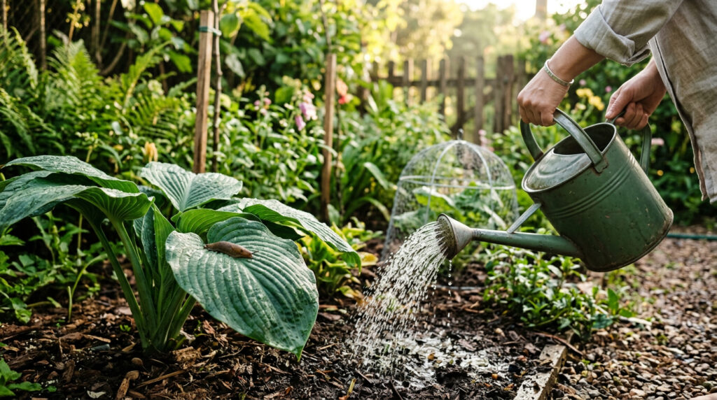 Ao regar cedo, você reduz a chance de deixar o solo encharcado justamente no período em que as lesmas saem para se alimentar. Isso torna o ambiente menos atrativo e dificulta o deslocamento delas até as plantas mais sensíveis.