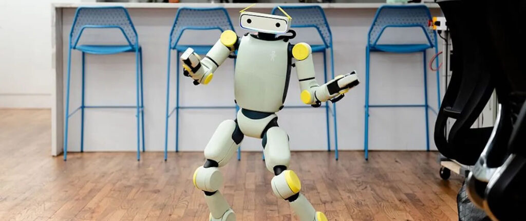 Diferente dos robôs industriais massivos que dominam o setor, o Sprout tem apenas 1 metro de altura e pesa 22 kg. Ele caminha sobre duas pernas, consegue se levantar sozinho e possui uma agilidade surpreendente — vídeos de demonstração mostram o robô executando passos de dança como o “Floss” com fluidez.