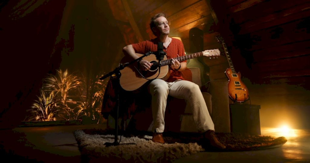 No single Tempo Perdido (Acusticamente), o artista aposta em voz e violões para criar uma nova atmosfera, transformando a canção em uma experiência mais próxima, quase como se fosse tocada ao vivo para cada ouvinte.