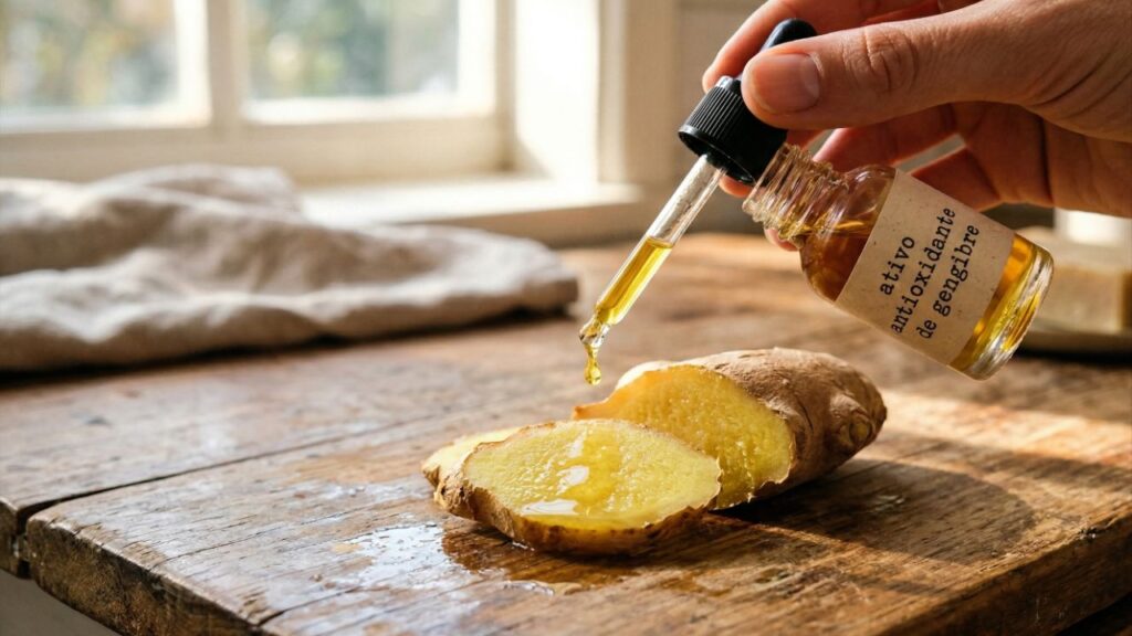 O envelhecimento cutâneo está intimamente ligado à ação das espécies reativas de oxigênio, os radicais livres. Por ser rico em antioxidantes, o gengibre é utilizado em fórmulas que pretendem reduzir o impacto diário desses radicais sobre colágeno, elastina e lipídios da barreira cutânea, sobretudo em ambientes urbanos com alta poluição.