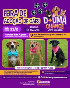 Parque das Águas recebe a feira de adoção de cães do Canil Municipal neste sábado (21) 19 de fevereiro de 2026 20:38