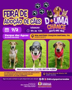 Feira de adoção de cães do Canil Municipal ocorrerá no Parque das Águas neste sábado (07) 6 de fevereiro de 2026 11:39