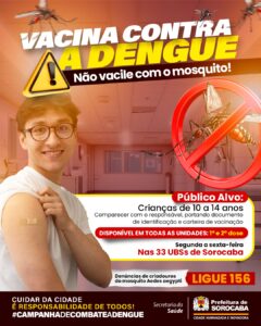 Vacinação contra dengue para o público de 10 a 14 anos segue disponível nas 33 UBSs 5 de fevereiro de 2026 12:39