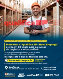 Prefeitura e “Qualifica SP – Novo Emprego” oferecem 60 vagas para os cursos de Logística e Almoxarifado 28 de janeiro de 2026 12:39