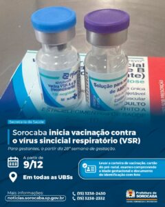 Sorocaba inicia vacinação contra o vírus sincicial respiratório (VSR) na terça-feira (9) 5 de dezembro de 2025 16:40