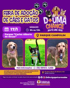 Feira de adoção de cães e gatos do Canil Municipal ocorrerá no Parque Campolim neste sábado (17) 16 de janeiro de 2026 15:39