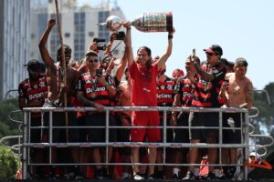 Jogadores do Flamengo provocam rival carioca e Palmeiras em festa do título 30 de novembro de 2025 16:41