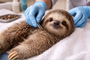 Veja o alívio no rosto desta preguiça depois que 40 carrapatos foram removidos do seu corpo 11 de abril de 2026 05:39