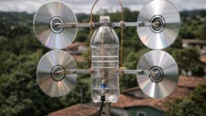 Essa ideia com CDs antigos e garrafa plástica criou uma antena caseira bem curiosa 9 de abril de 2026 18:39
