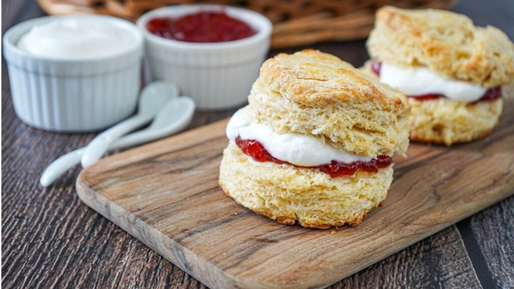 O grande astro de qualquer chá da tarde britânico é o scone. Esses pãezinhos, que ficam entre um bolo e um biscoito, devem ser servidos quentes, acompanhados de clotted cream (um creme de leite espesso) e geleia de morango ou framboesa. A combinação é indispensável para uma experiência autêntica.