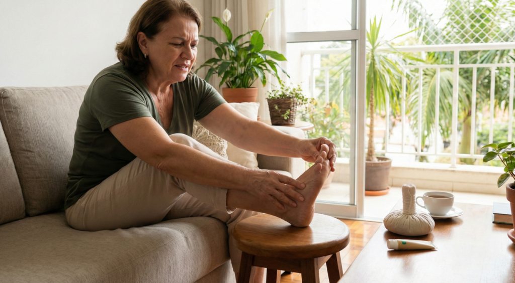 Mas também existem cenários diferentes: uma entorse antiga, um período com muito tempo em pé, um treino puxado ou até crises inflamatórias. Por isso, a meta aqui é aliviar, proteger e observar sinais, sem tentar “forçar o dedo a obedecer”.