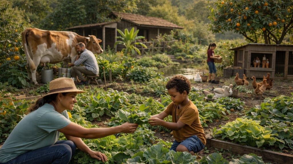 Na prática, quem vive em um sítio pequeno raramente produz absolutamente tudo o que consome, mas pode reduzir bastante a dependência da cidade. Hortaliças, frutas, ovos e parte das proteínas podem vir do próprio terreno, enquanto itens como sal, óleo, café, arroz ou alguns grãos seguem sendo comprados. Essa mudança já altera o orçamento e diminui a vulnerabilidade a oscilações de preços e problemas de abastecimento.