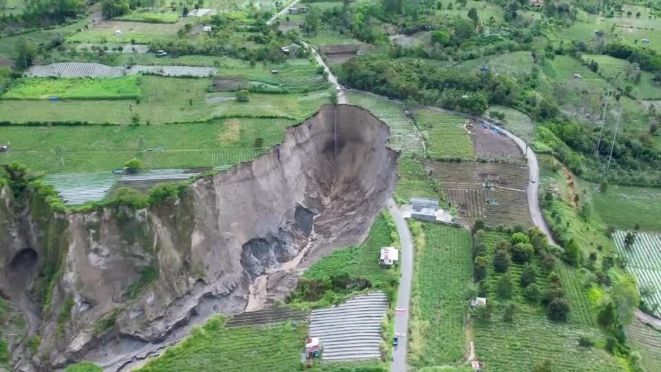 Imagens de drones captadas no sábado (14) revelaram penhascos íngremes e fraturados que cortam campos de cultivo no distrito de Ketol.