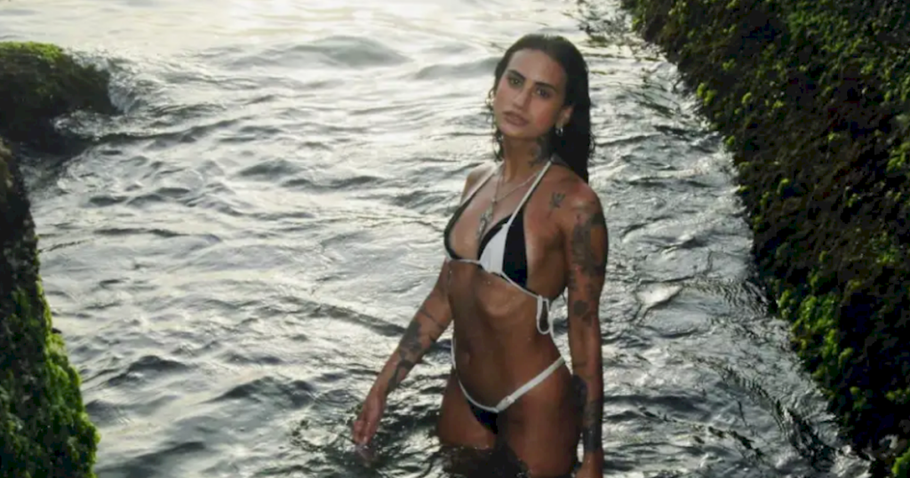 Na foto, feita ao ar livre e com forte presença de luz natural, o cenário cotidiano ganha outra leitura. Entre tecidos claros no varal e a pele exposta ao sol, o registro constrói uma atmosfera mais íntima, quente e conectada ao conceito da faixa. Sem explicações, a artista aposta na sensação para engajar o público.
