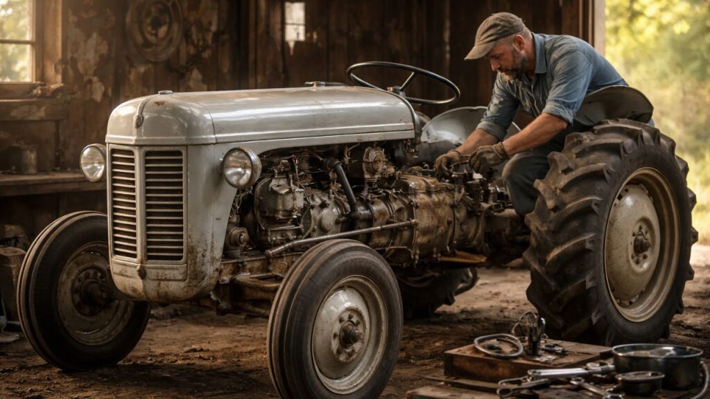 Ao iniciar uma restauração de trator dessa idade, a etapa mecânica costuma ser a prioridade absoluta. Não é recomendável apenas tentar dar partida no motor após décadas parado, sendo necessário avaliar alimentação de combustível, sistema de ignição, compressão dos cilindros, lubrificação interna e estado geral do bloco.