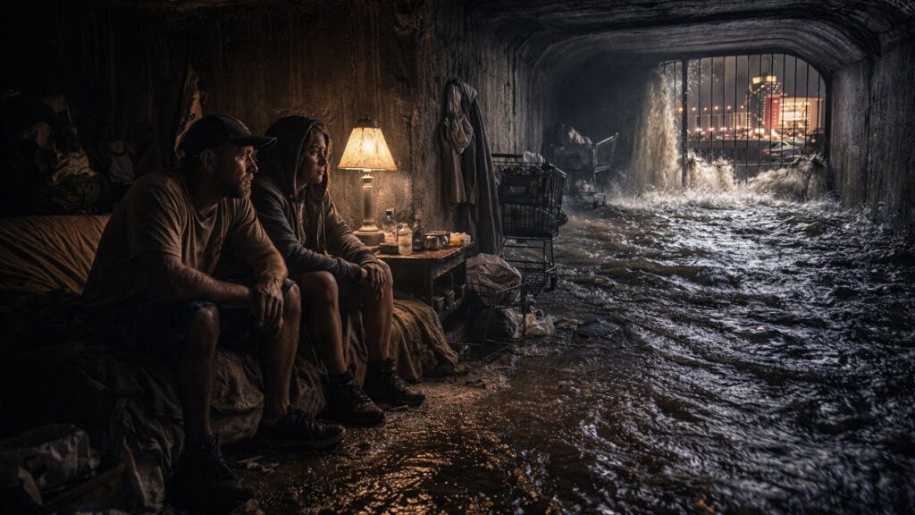 Debaixo das luzes e cassinos de Las Vegas existe uma realidade quase invisível. Nos túneis de drenagem da cidade, centenas de pessoas vivem escondidas da superfície, enfrentando escuridão constante, condições precárias e o risco de enchentes repentinas.