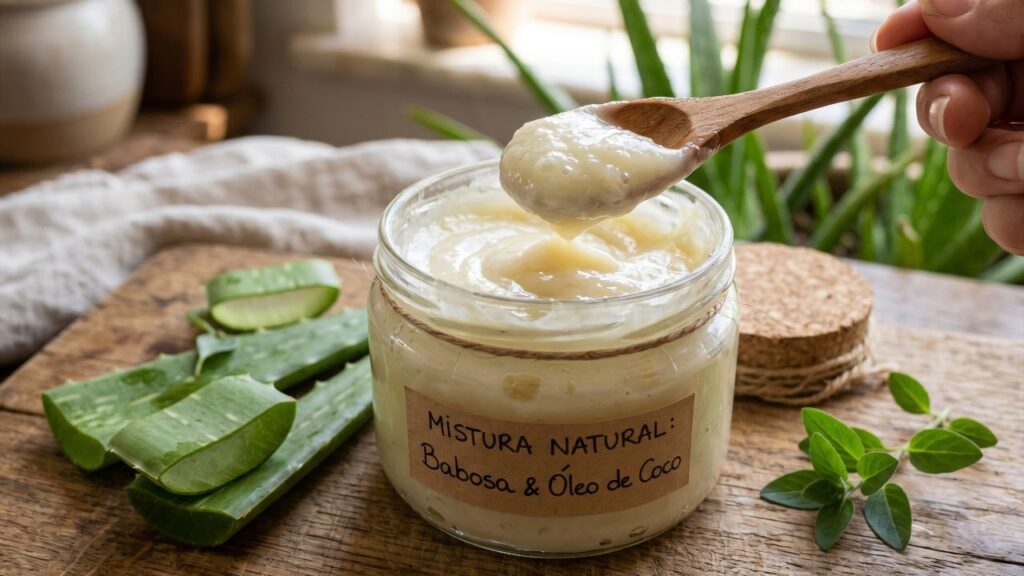 babosa com óleo de coco é vista como uma alternativa para quem busca cuidados mais naturais com os cabelos grisalhos. O gel da babosa, retirado da folha da aloe vera, contém substâncias que ajudam na hidratação e na sensação de maciez dos fios, algo muito valorizado por quem sente o cabelo mais áspero com a idade.
