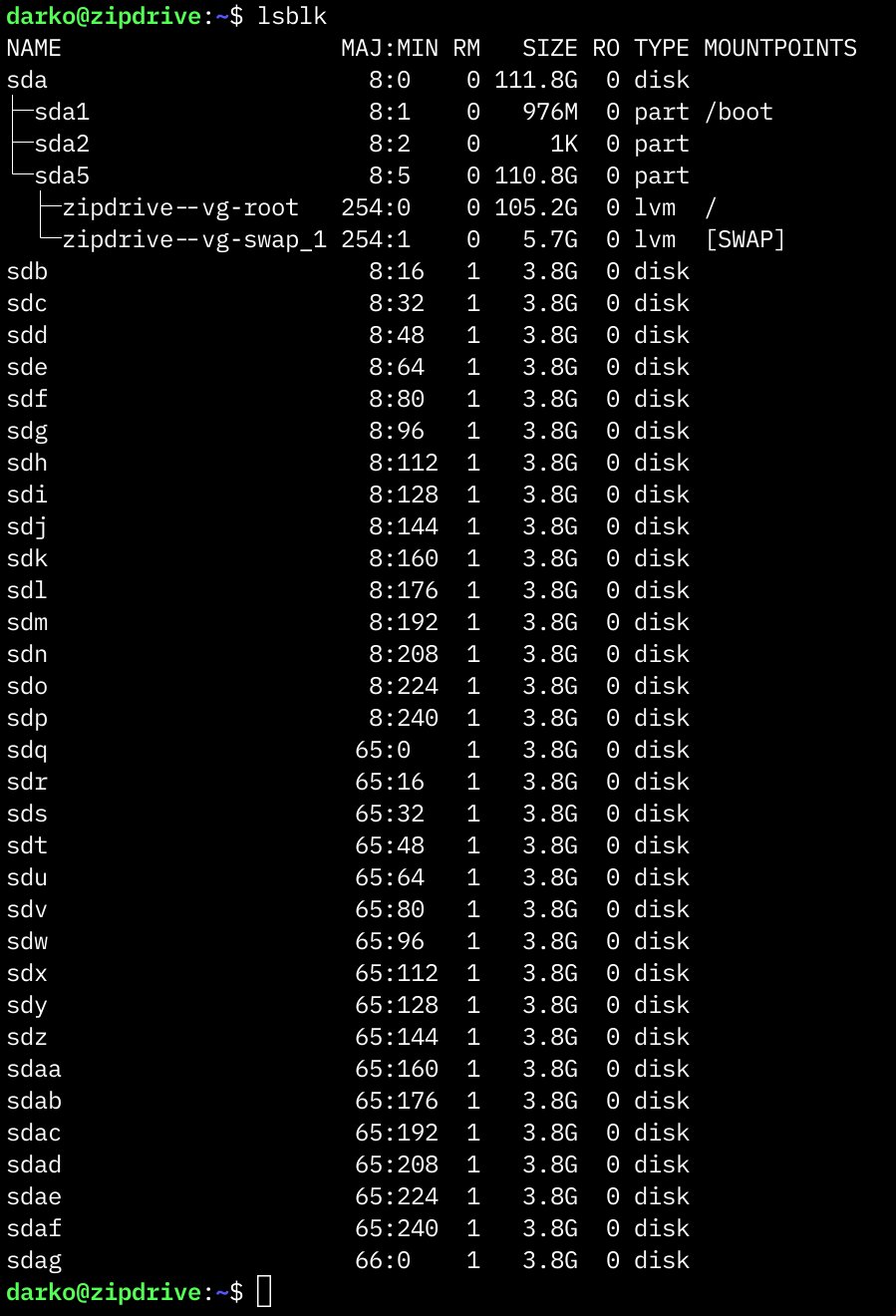 O RAID 0 distribui os dados em fatias entre todos os discos do conjunto, o que aumenta a velocidade de leitura e escrita em proporção ao número de unidades, mas elimina qualquer tolerância a falhas. Se um único pendrive parar de funcionar, todo o conjunto se torna inutilizável e os dados são perdidos sem possibilidade de recuperação. Com 32 discos no arranjo, a probabilidade de falha do conjunto inteiro cresce exponencialmente. Pendrives USB baratos agravam esse cenário porque suas memórias flash são projetadas para ciclos de escrita muito menores do que SSDs de uso profissional, com controladores simples que não gerenciam bem desgaste nem erros silenciosos. Rodar um serviço de armazenamento de objetos em cima disso, com escrita contínua, é acelerar o relógio até a falha.