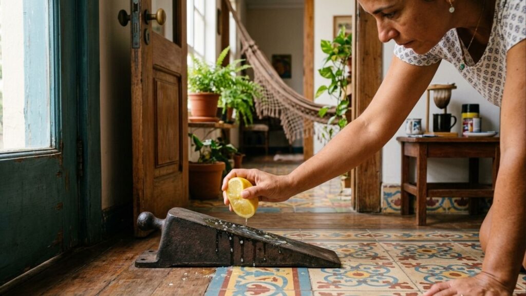 No dia a dia, a utilidade do limão aparece principalmente como um reforço de higiene doméstica. O suco de limão pode ajudar a limpar o picaporte, reduzir odores e soltar resíduos que ficam acumulados com o uso constante. Isso faz sentido especialmente em portas de entrada, cozinha e banheiro, onde o contato é repetido ao longo do dia.