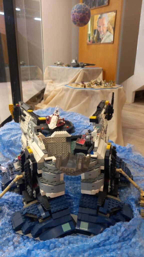 Entre as obras apresentadas está a releitura de uma lendária nave de combate, totalmente reconstruída a partir do imaginário artístico do autor. A peça, reinventada em seu interior e adaptada para se abrir revelando compartimentos, salas e acontecimentos que simbolizam a criação de um exército artificial e os ambientes privados de um caçador de recompensas. Essa solução criativa, inexistente na obra original de referência, tornou-se um dos elementos mais autorais da exposição.