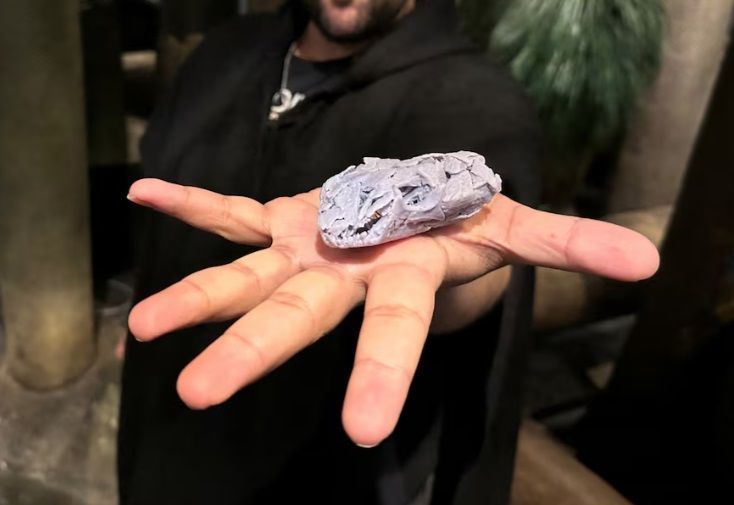 Para analisar o interior do fóssil, os pesquisadores utilizaram tomografia computadorizada e identificaram dezenas de dentes cônicos no céu da boca.