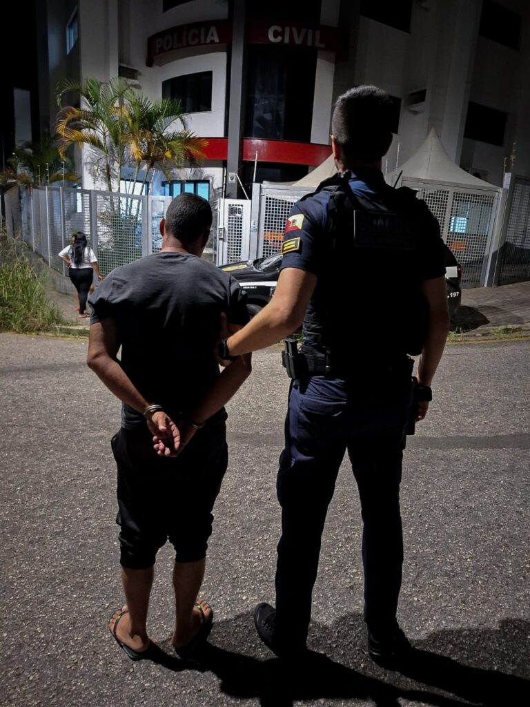 Em consulta, foi confirmada a existência de medida protetiva válida, além de débitos administrativos no veículo, que acabou recolhido. Diante da situação, foi dada voz de prisão ao indivíduo, pelo crime de descumprimento de medida protetiva contra a mulher.