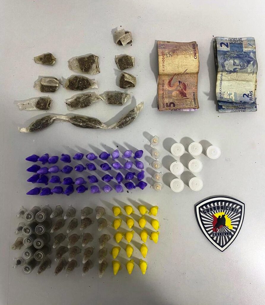 A atitude chamou a atenção dos guardas, que o abordaram próximo do córrego que dá acesso a outra rua do bairro. Antes, porém, ele arremessou uma sacola para dentro da mata. Na varredura realizada na área, os guardas localizaram a sacola, que continha 12 porções de crack, 77 de maconha e 58 de cocaína, mais R$ 18 em dinheiro.