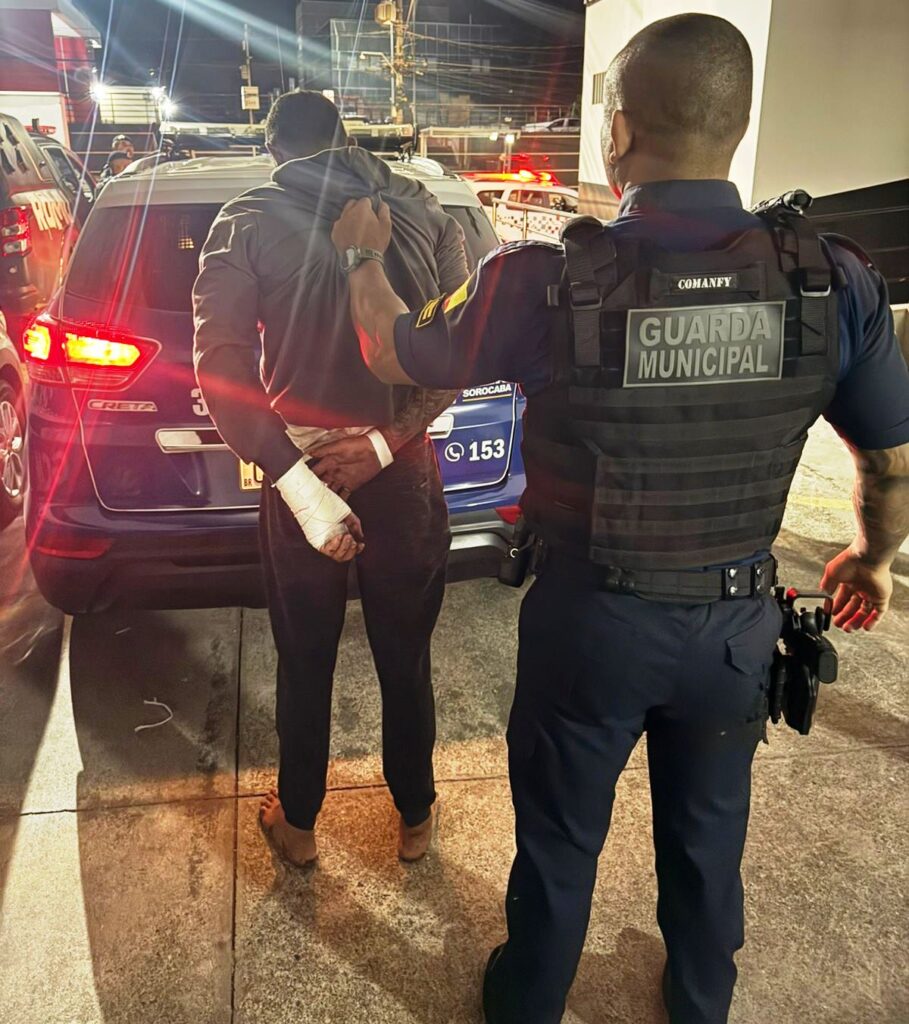 Diante da situação de flagrante delito, os guardas entraram no imóvel detiveram o suspeito, que tentou fugir escalando um muro e acessou o telhado de casas vizinhas. Porém, sofreu queda, que resultou em ferimentos leves e acabou abordado em um terreno próximo.