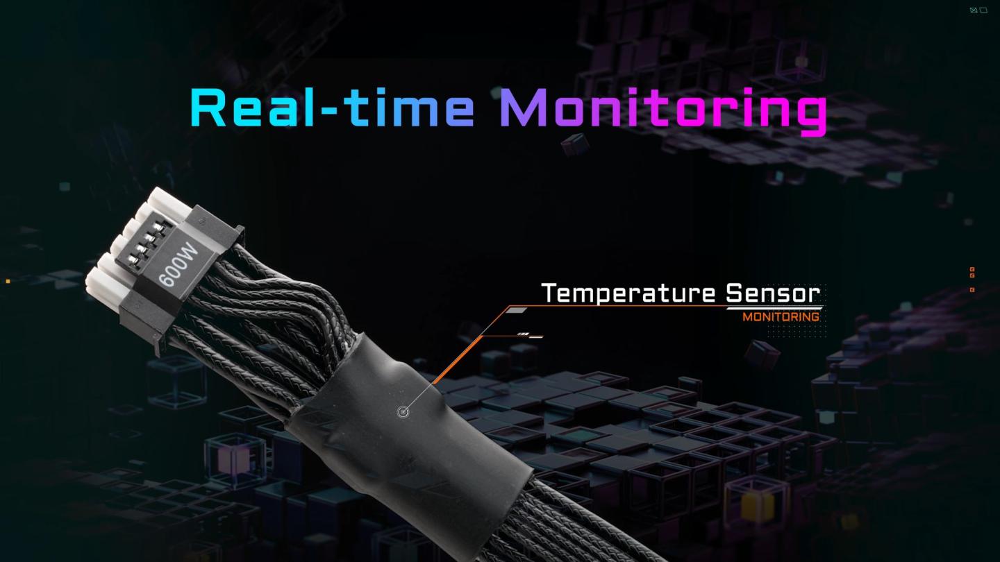 A ideia é simples e eficaz: a Gigabyte instalou um sensor de temperatura diretamente no conector do cabo que vai plugado na GPU. Esse sensor monitora o calor em tempo real. Se o contato estiver frouxo ou a carga de 500W+ começar a superaquecer o plástico, a fonte reduz drasticamente o consumo de energia da placa de vídeo e emite um alerta ao usuário. Isso dá tempo para o dono do PC salvar seus trabalhos e desligar a máquina com segurança, evitando que o conector chegue ao ponto de fusão ou que o sistema sofra um desligamento abrupto que poderia corromper dados em HDs e SSDs.