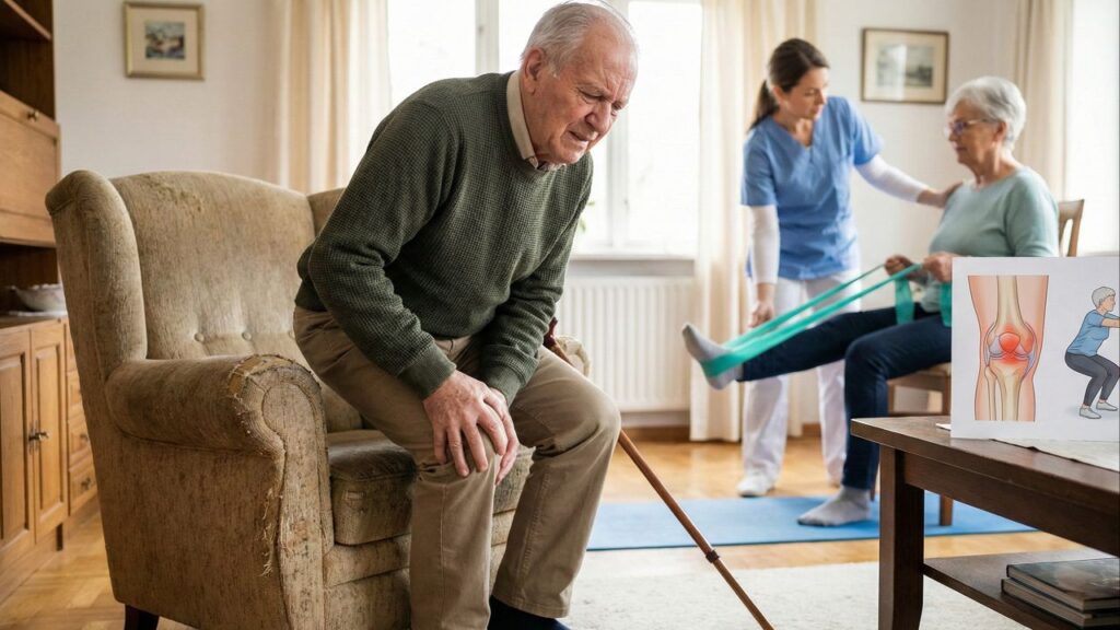 Levantar da cadeira com dor no joelho é uma queixa frequente entre pessoas idosas e costuma indicar desgaste articular, fraqueza muscular ou falta de mobilidade. Em muitos casos, essa dor aparece no momento de apoiar o peso do corpo para sair da posição sentada, tornando importante o uso de alongamentos e exercícios simples para diminuir o desconforto e facilitar as atividades do dia a dia.