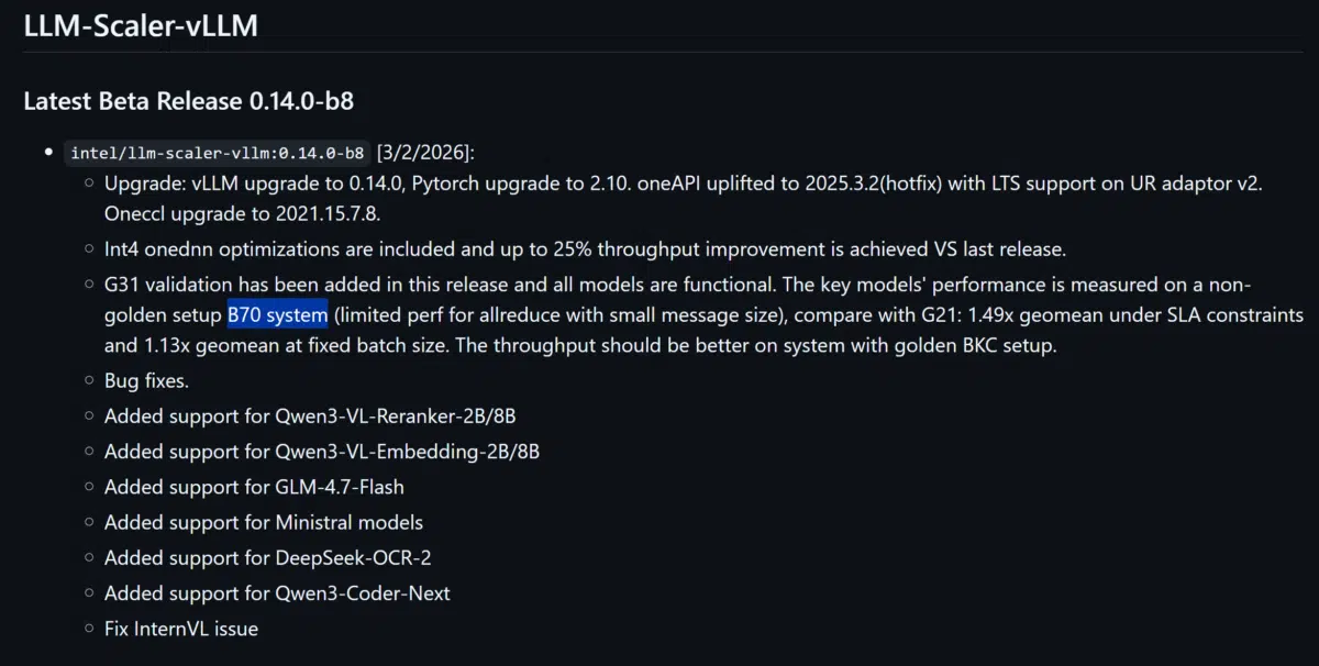 A Intel validou o chip BMG-G31 em notas de drivers recentes, sinalizando o lançamento iminente da Arc Pro B70 para workloads de IA e estações de trabalho. Essa GPU profissional usa arquitetura Xe2 e prioriza capacidade de memória sobre jogos, com 32 GB de GDDR6 em barramento de 256 bits. Parceiros já testam o hardware, mas o modelo gamer B770 permanece em pausa devido a escassez de DRAM.