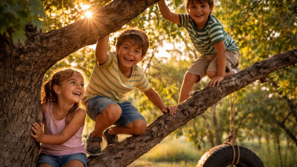 A nostalgia de infância ligada a subir em árvore costuma ser intensa porque envolve experiências completas: corpo em movimento, emoção, desafio e convivência. A criança calcula o próximo galho, testa a firmeza do tronco, controla o medo da altura e muitas vezes divide o espaço com irmãos, primos ou amigos da rua.