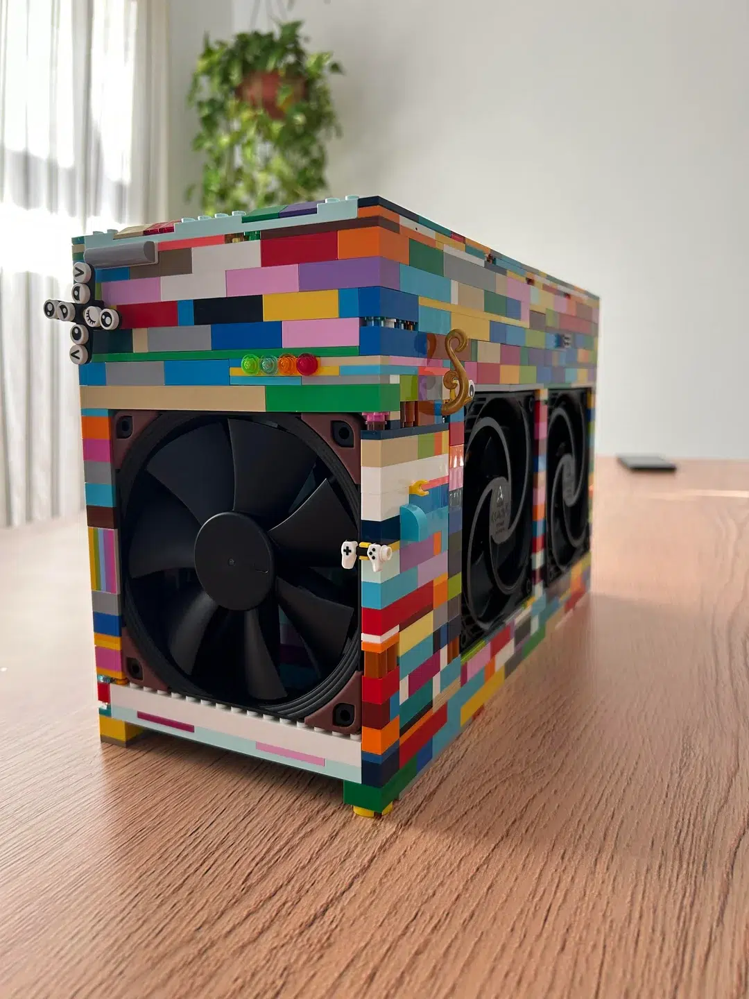 A maior preocupação em um gabinete feito de plástico é, naturalmente, o superaquecimento. No entanto, a dupla de construtores não focou apenas na estética colorida. Eles desenvolveram um sistema de ventilação eficiente que utiliza recuos estratégicos entre as peças e aberturas para fans na parte traseira. O resultado é um sistema de arrefecimento por frestas, que garante que o ar quente não fique preso na estrutura. “Estávamos apenas nos divertindo e fazendo testes enquanto construíamos, não usamos nenhum material além de Lego e tiras de velcro para prender os cabos”, disse a mãe no post.
