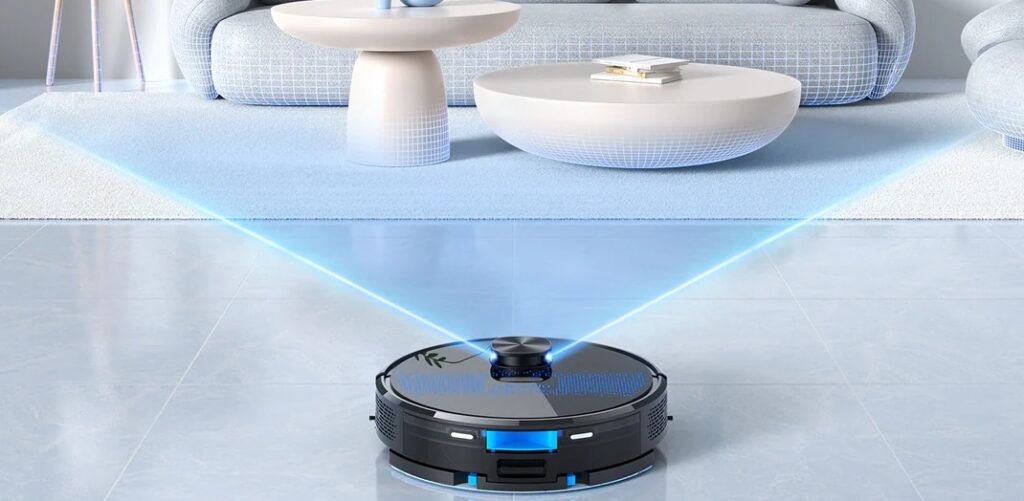 Um robô com mapeamento, por outro lado, usa sensores (geralmente a laser, via tecnologia Lidar) para criar um mapa real da sua casa. Com esse mapa em mãos, ele traça rotas organizadas, evita repetir o mesmo caminho sem necessidade e garante que nenhum canto seja esquecido. O resultado é uma limpeza mais completa em menos tempo — e com menos bateria gasta.