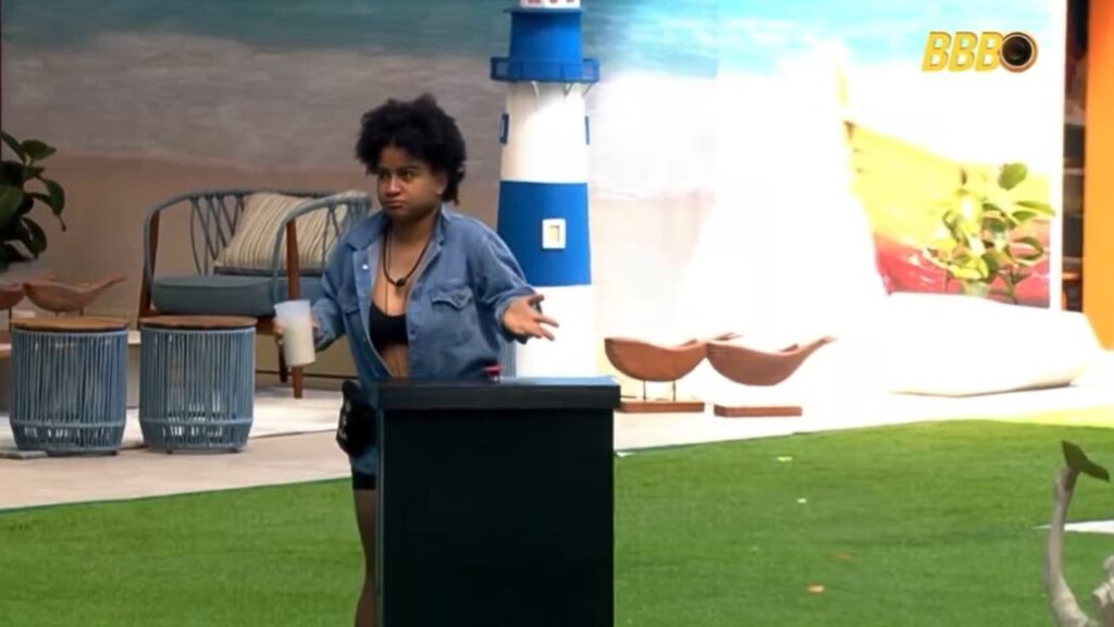 Logo depois de apertar o botão, a mineira foi conversar com Ana Paula Renault e Leandro Boneco sobre o que a ação poderia significar para o seu jogo. “Eu apertei o botão! Se for Paredão eu tô nele!”, disse ela, admitindo que esperava que o dispositivo fosse o Big Fone.