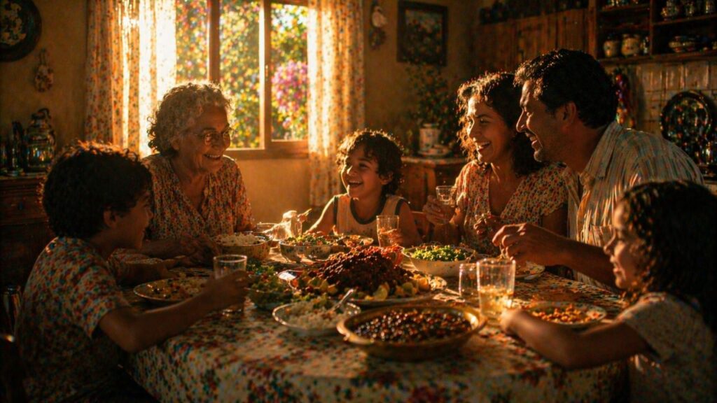 A ausência de pressa criava um clima único: havia espaço para repetir o prato, levantar, voltar e ouvir uma história antiga pela terceira vez. Reconciliações, notícias importantes, anúncios de mudanças e até despedidas frequentemente aconteciam nesse contexto, reforçando a mesa como um cenário de organização das emoções.