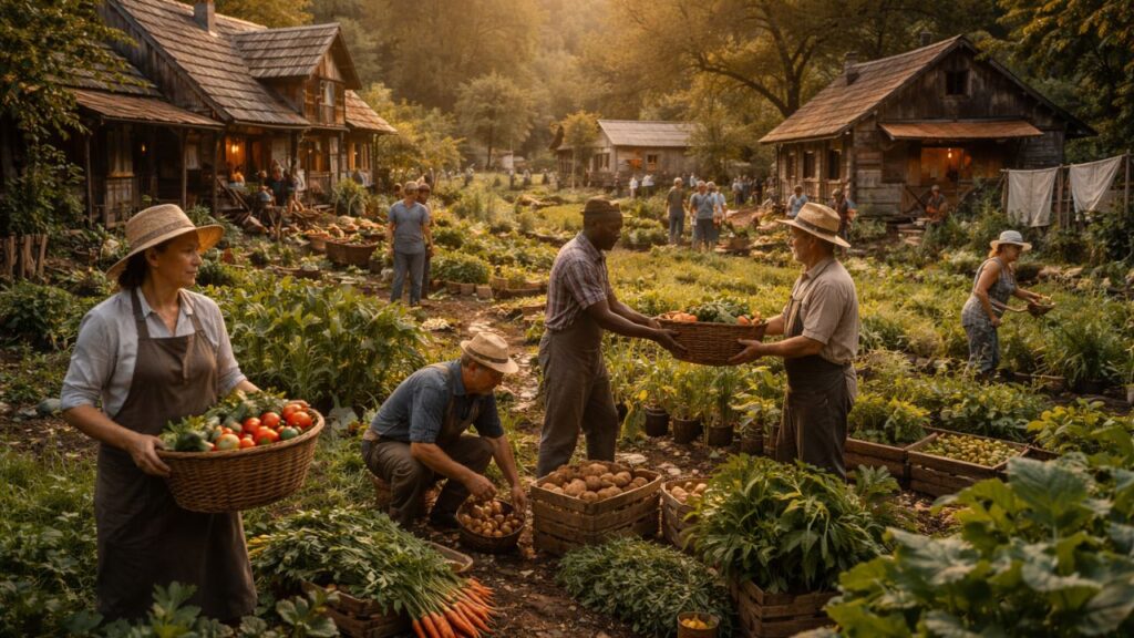 A vida comunitária na vila se estrutura em torno de laços de vizinhança e de ajuda mútua. Moradores compartilham ferramentas, combinam mutirões para preparar a terra ou construir pequenos galpões e dividem o que sobra da produção, fortalecendo um senso de responsabilidade coletiva e de confiança entre as pessoas.
