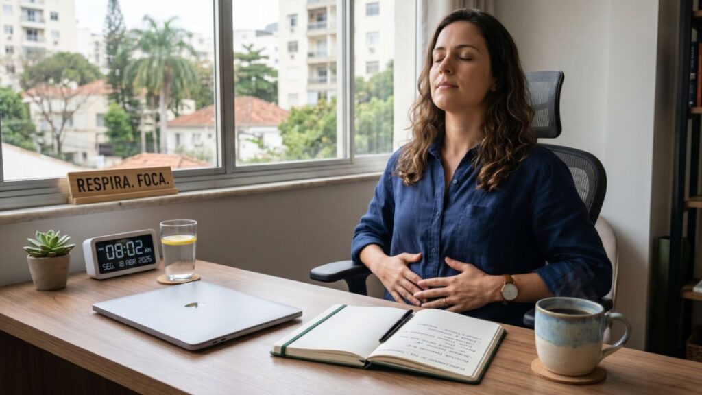 Inserir a respiração profunda de 2 minutos na rotina matinal pode trazer efeitos práticos em diferentes áreas da vida cotidiana. No ambiente de trabalho, por exemplo, esse pequeno exercício ao despertar colabora para maior organização das ideias e priorização de tarefas, o que reduz a sensação de pressa e melhora o rendimento ao longo da manhã.