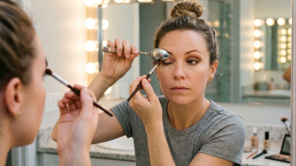 O uso criativo de objetos do dia a dia na maquiagem está em alta, e o hack da colher com sombra nos olhos se tornou um dos truques favoritos para quem busca praticidade e um acabamento mais profissional sem gastar muito, facilitando a marcação do côncavo, a criação de um esfumado levantado e ajudando principalmente iniciantes a conquistarem um olhar definido e simétrico.