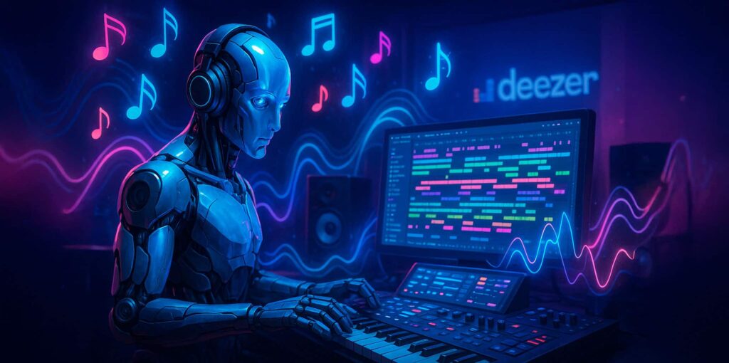 Em junho de 2025, o Deezer lançou o que descreveu como o primeiro sistema de identificação de músicas geradas por IA voltado para plataformas de streaming. Em janeiro de 2026, a empresa disponibilizou essa ferramenta comercialmente para outras empresas do setor, sinalizando que pretende posicionar a tecnologia de detecção como serviço independente. Todos os álbuns com faixas de IA passam a ter identificação visível para o usuário, garantindo que a informação esteja acessível mesmo para quem não consegue perceber a diferença pelo ouvido.