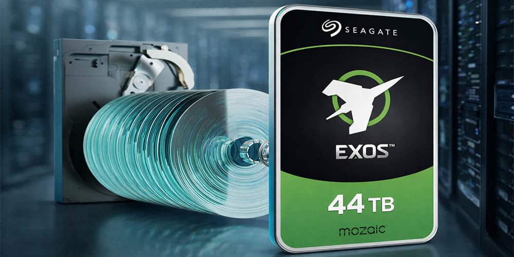 A Seagate colocou no mercado discos rígidos de 44 terabytes baseados na plataforma Mozaic 4+, com remessas em volume já iniciadas para dois provedores de nuvem de empresas não reveladas. Esses HDs usam gravação magnética assistida por calor (HAMR, na sigla em inglês), que aquece brevemente a superfície do disco com laser para permitir densidades maiores de dados. A qualificação para produção em escala ocorre em data centers massivos, onde armazenam conjuntos gigantes para IA e análises.