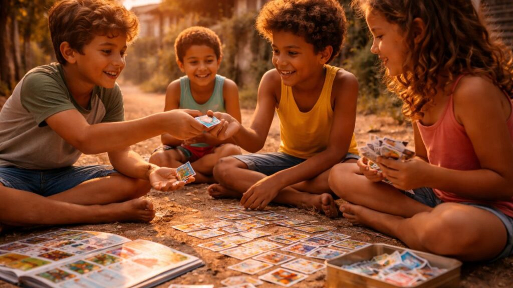 A troca de figurinha foi, por muitos anos, um dos principais rituais de socialização entre crianças. Não se tratava apenas de completar um álbum, mas de participar de uma comunidade com códigos, expressões e regras próprias compartilhadas entre colegas.