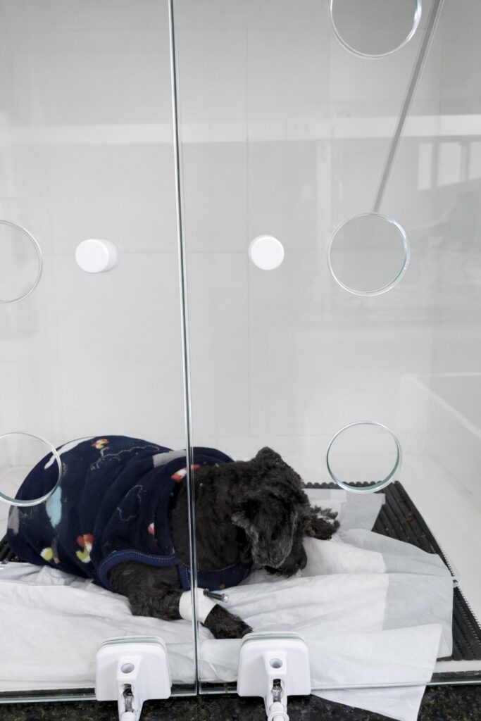 O animal estava sendo avaliado na FAS, com a boca sangrando e a região de palato tomado por miíase (bicheira), com necrose de palato e dentes caindo. Ao ser questionada, a esposa do tutor alegou que levou o seu pet há três meses a um veterinário, por conta do mau hálito, e o mesmo falou que o animal não aguentaria um procedimento cirúrgico (sem exames).