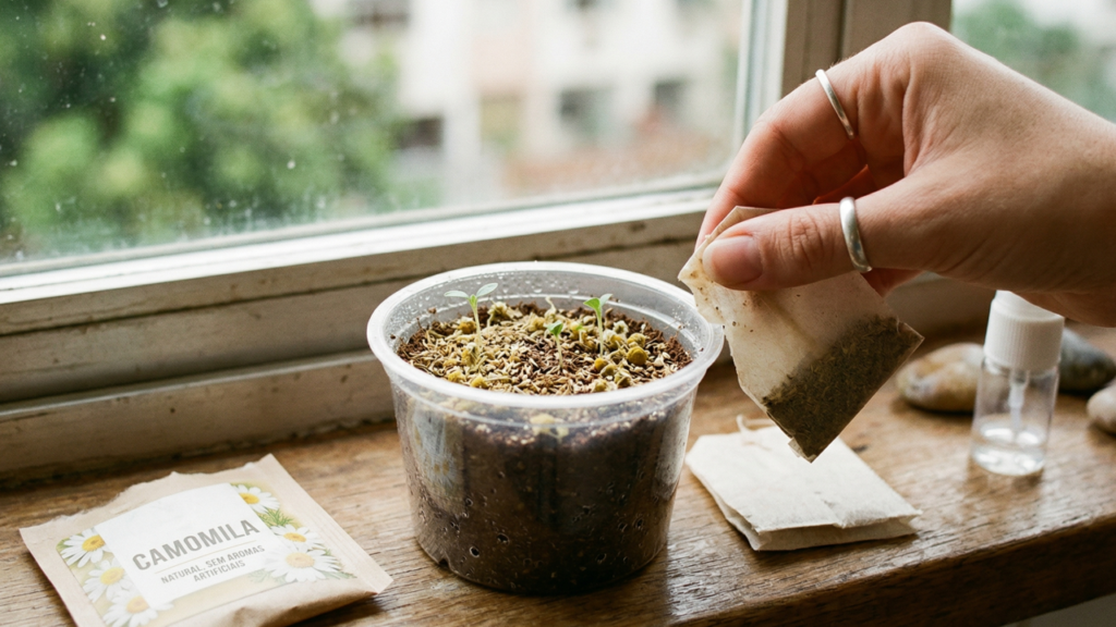 A ideia parece improvável, mas vem chamando atenção justamente pela simplicidade. Em vez de comprar sementes logo de início, muita gente resolveu testar um método caseiro com sachê de chá de camomila para tentar a germinação em vasos e floreiras. O apelo está no baixo custo, na praticidade e na sensação de transformar algo comum da cozinha em um pequeno projeto verde dentro de casa. Para quem gosta de jardinagem fácil, esse truque pode funcionar como porta de entrada para começar a cultivar ervas de forma leve e descomplicada.