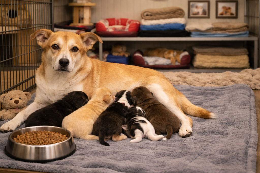 Animais, principalmente cães, possuem instintos maternos muito fortes. Quando os filhotes chegaram ao abrigo, a cadela rapidamente demonstrou interesse e passou a agir como cuidadora, assumindo o papel de mãe para os pequenos pets.
