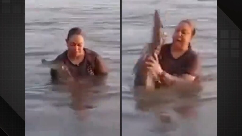 Ao perceber o que tinha nas mãos, ela gritou, arremessou o animal para o alto e correu em direção à margem. O caiman não demonstrou agressividade em nenhum momento. O episódio ocorreu no domingo (5) e as imagens viralizaram nas redes sociais durante a semana.